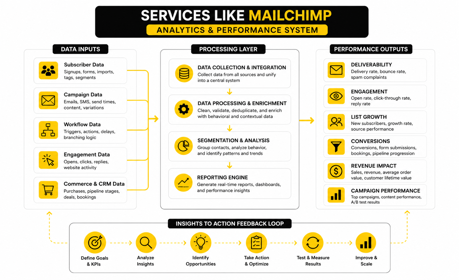 Measurement is where services like Mailchimp either prove their value or expose weak strategy. Open rates, click rates, unsubscribes, bounce rates, conversions, and revenue attribution all matter, but none of them should be read in isolation. A high open rate with weak sales is not a win, and a lower open rate with strong booked calls or purchases may be exactly what the business needs.