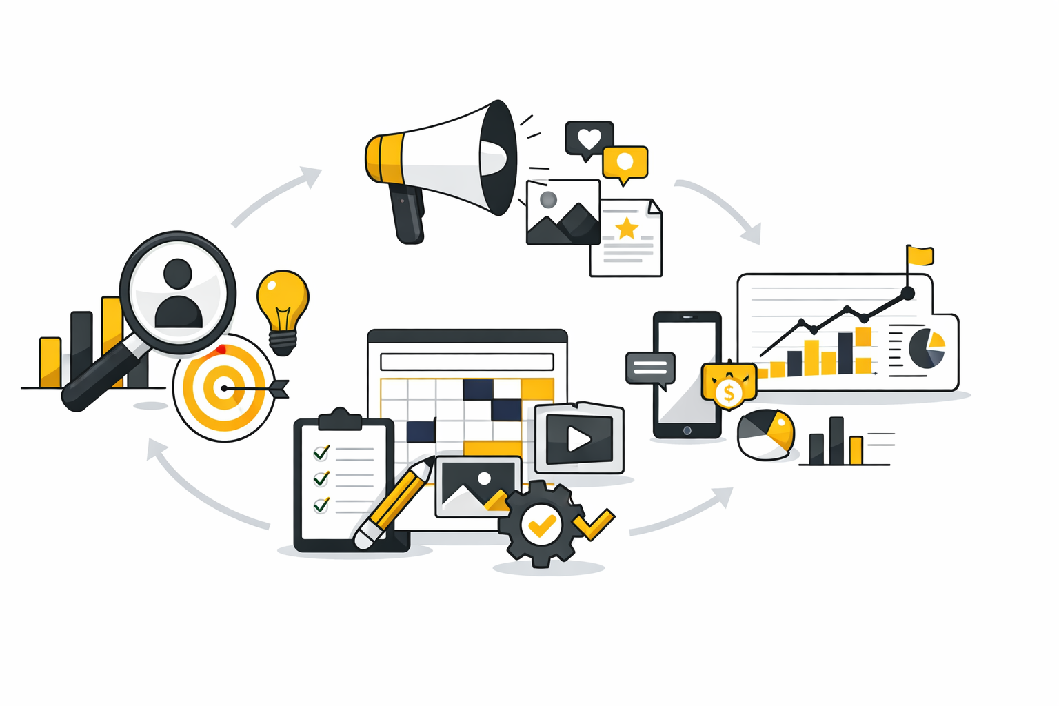 The strongest version of a social media content strategy is not a posting calendar. It is a connected system with six moving parts: audience insight, positioning, content pillars, format and channel choices, a reliable production workflow, and a measurement loop that tells you what to improve next. That matters even more now because the average connected user moves across about 6.75 social platforms a month, while major platforms keep rewarding relevance, originality, retention, and viewer satisfaction rather than simple follower distribution. DataReportal – Global Digital Insights+3