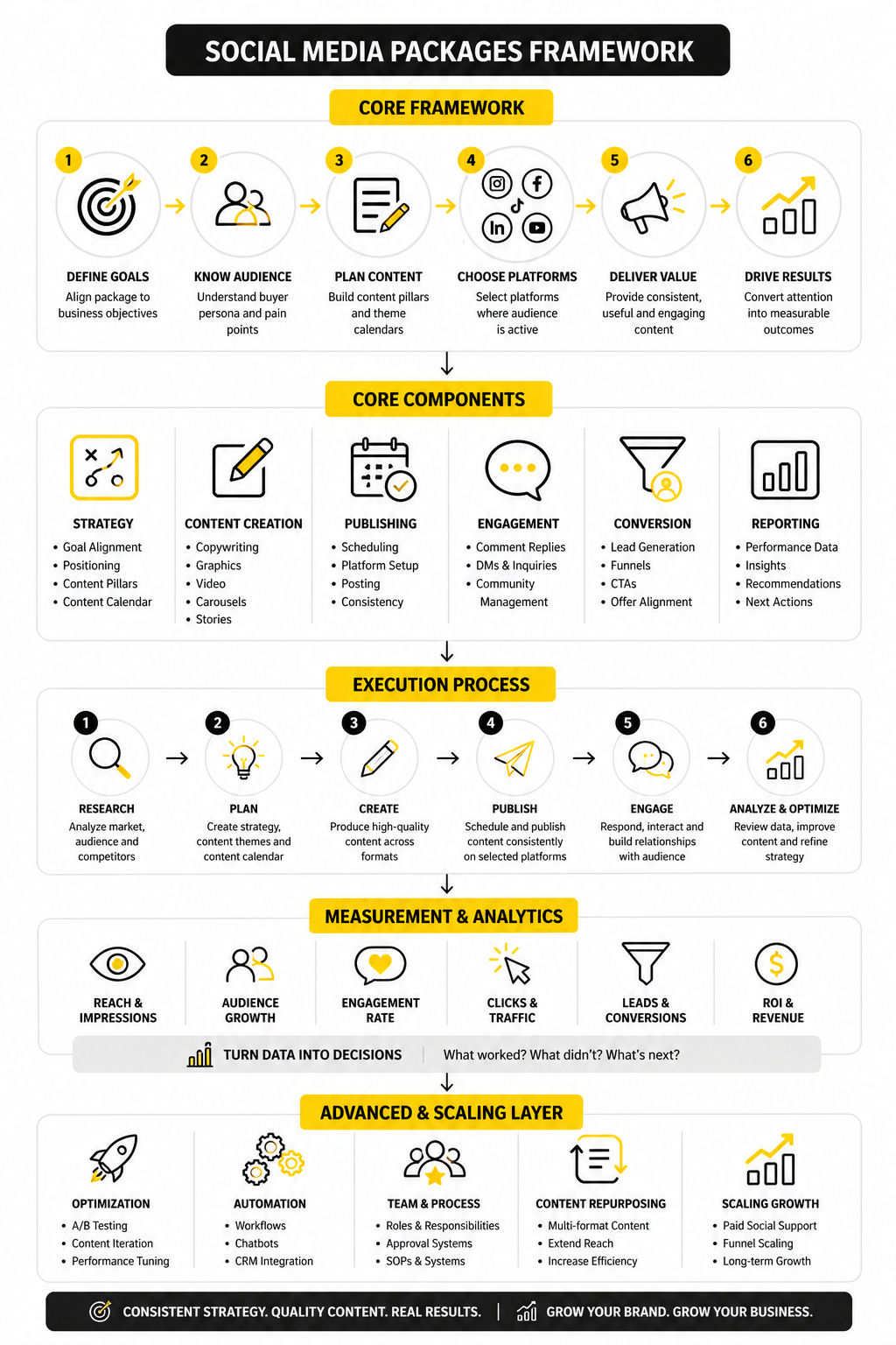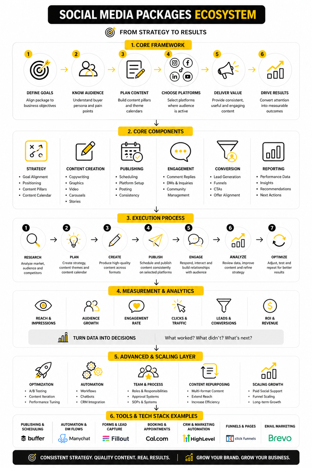 That is why the best social media packages are not just bundles of posts. They are decision frameworks. They help a client choose between visibility, consistency, engagement, lead generation, sales support, or a full growth system.