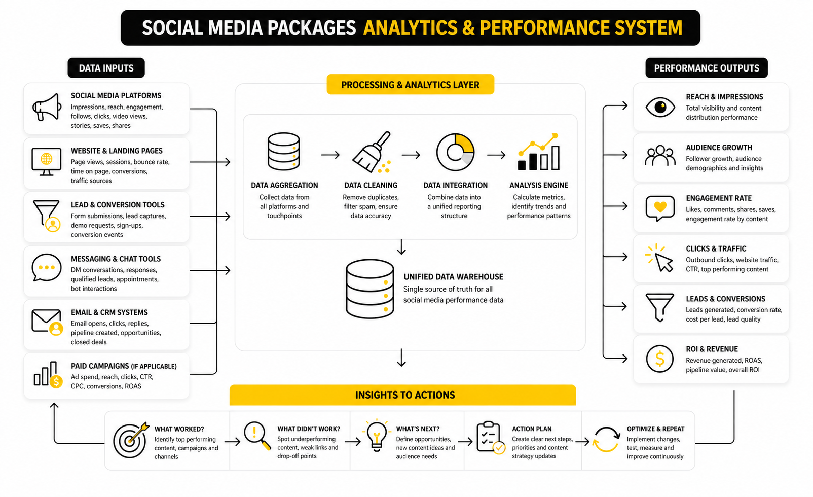 This matters because social media data can be misleading when it is read in isolation. A post with high reach may create no leads. A post with fewer views may generate strong comments, direct messages, saves, clicks, or booked calls. The numbers only become useful when they are tied to the package goal.