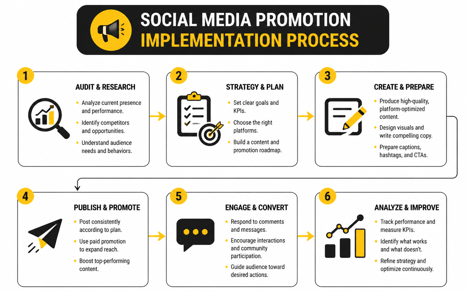 This disciplined approach ensures that social media promotion moves beyond sporadic posting into a structured, scalable system that drives measurable growth and strengthens brand presence.