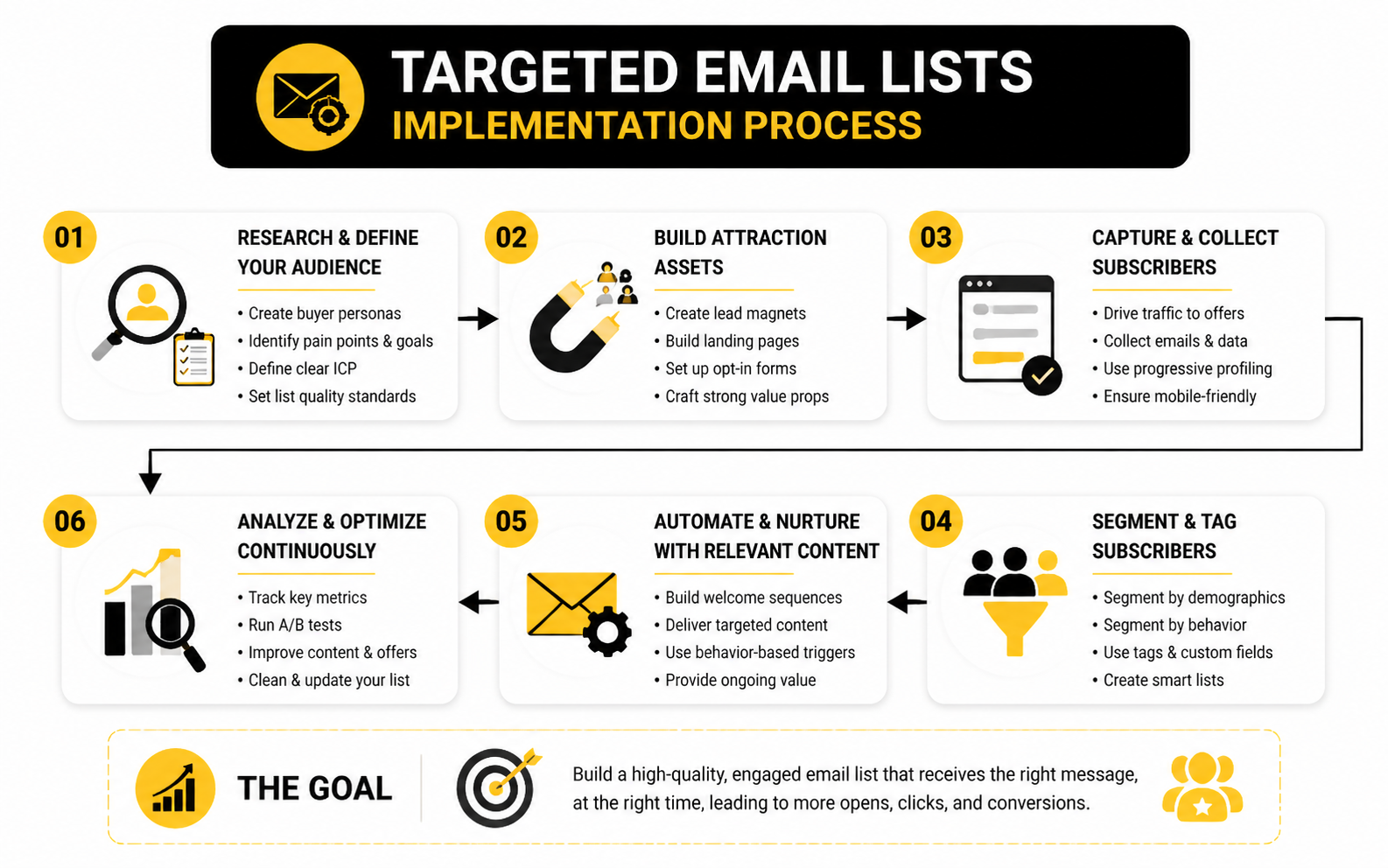 Building and deploying targeted email lists effectively requires a clear execution process. Without structured steps, even the best lists can fail to deliver results. The goal is to ensure each subscriber receives relevant messages that drive engagement and conversions.