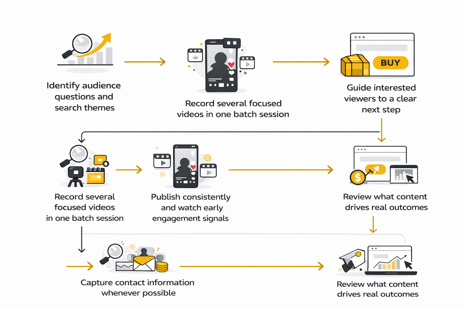 This process is not complicated, but it requires discipline. The goal is not to chase viral moments. The goal is to build a reliable discovery-to-conversion system.