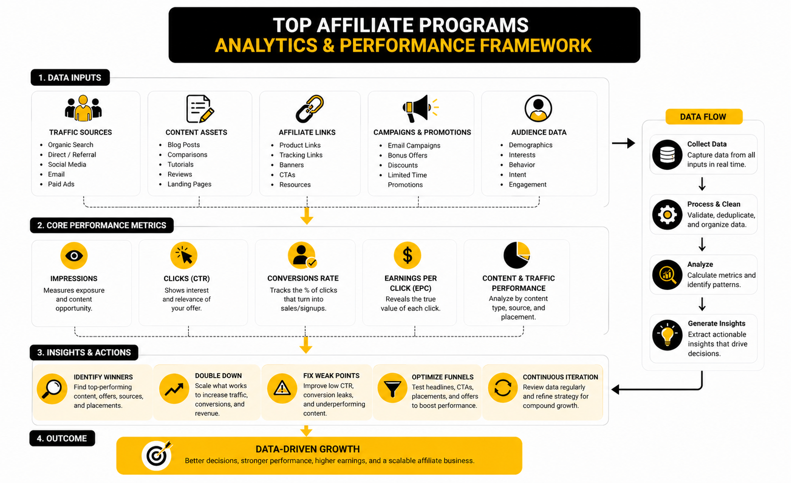 Data should make your affiliate decisions sharper, not noisier. Random statistics do not help if they do not change what you publish, promote, or improve. The point is to understand which top affiliate programs deserve more attention, which content assets need work, and which offers should be removed from your stack.