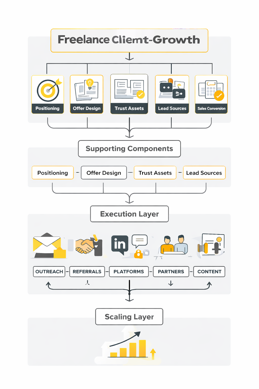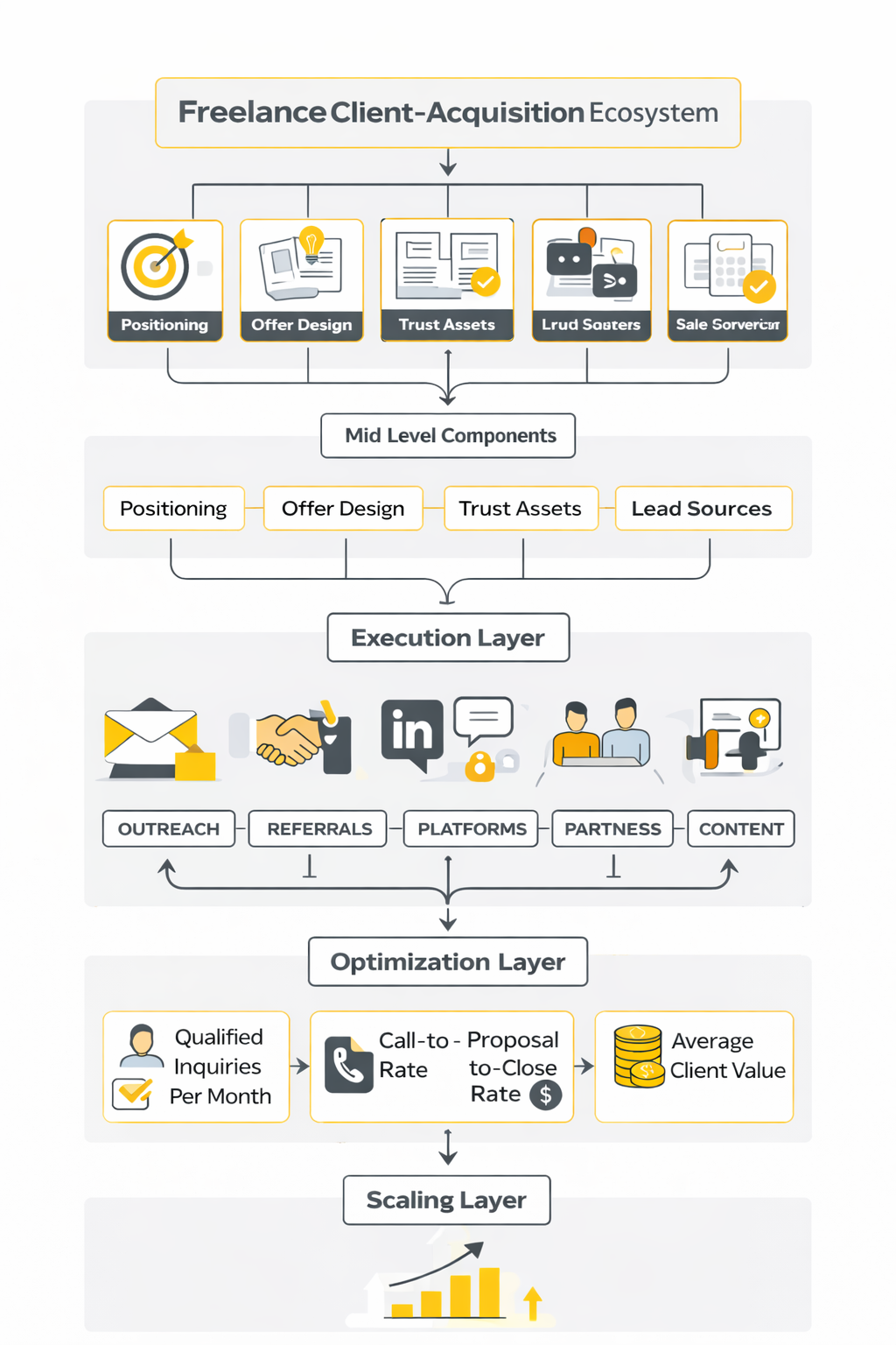 - Expansion layer Add adjacent work only after the core system is working. Expansion should feel like compounding success, not upselling for the sake of it.