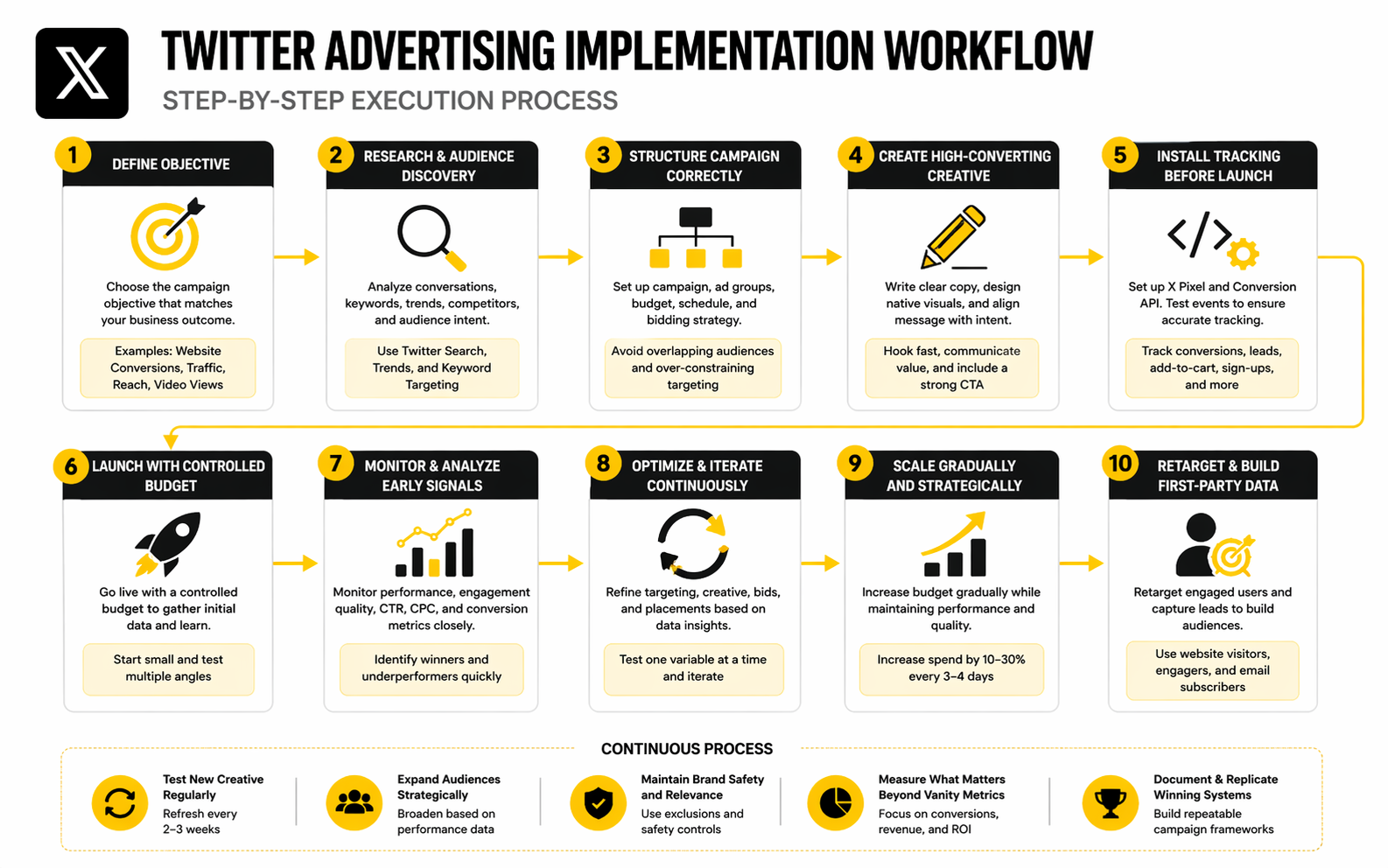 That is where advanced teams separate themselves from casual advertisers. They stop treating X like a one-off media buy and start treating it like an operating channel with its own rules, risks, and rhythms. The campaigns still matter, but process matters more.