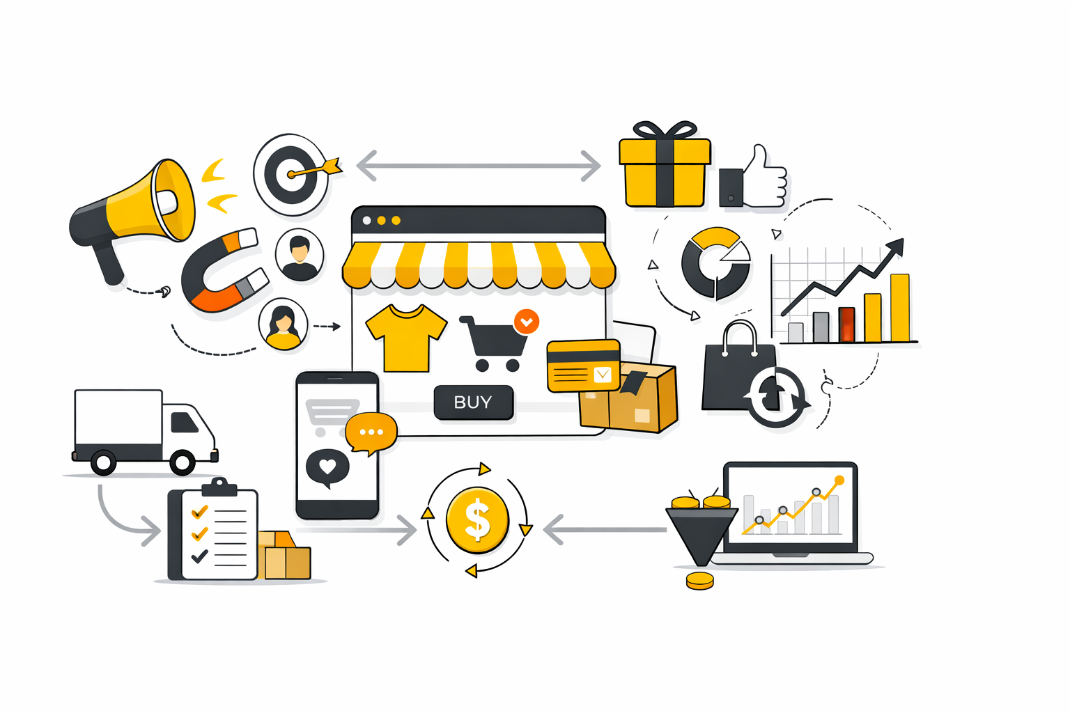- Retention and recovery A visitor who does not buy today is not automatically lost, and a first-time buyer is not automatically a customer worth keeping. Retention includes email, SMS, post-purchase education, replenishment, loyalty, win-back flows, and cart or browse recovery. For many shops, this is where profit improves fastest because it lifts revenue from customers you already paid to acquire.